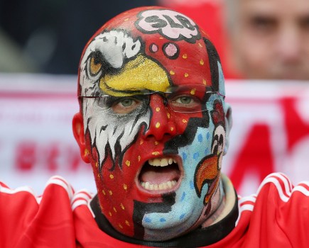 Among World Soccer's images from Thursday's Europa League and Libertadores Cup games is a tattooed fan from the Benfica v Tottenham game and action from the Seville derby where Sevilla beat Betis on away goals