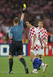 The English referee booked Croatia’s Josip Simunic three times before sending him off and also twice denied strong Australian penalty claims.